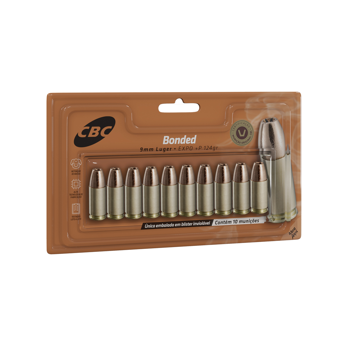 Devido ao processo tecnológico de fabricação, o projétil Bonded possui camisa metálica e núcleo de chumbo soldados, evitando sua fragmentação no disparo e garantindo resultados uniformes e manutenção de trajetória, mesmo em disparos indiretos. Com excelente desempenho no Protocolo do FBI, apresenta resultado superior em expansão, poder de parada, precisão e penetração.